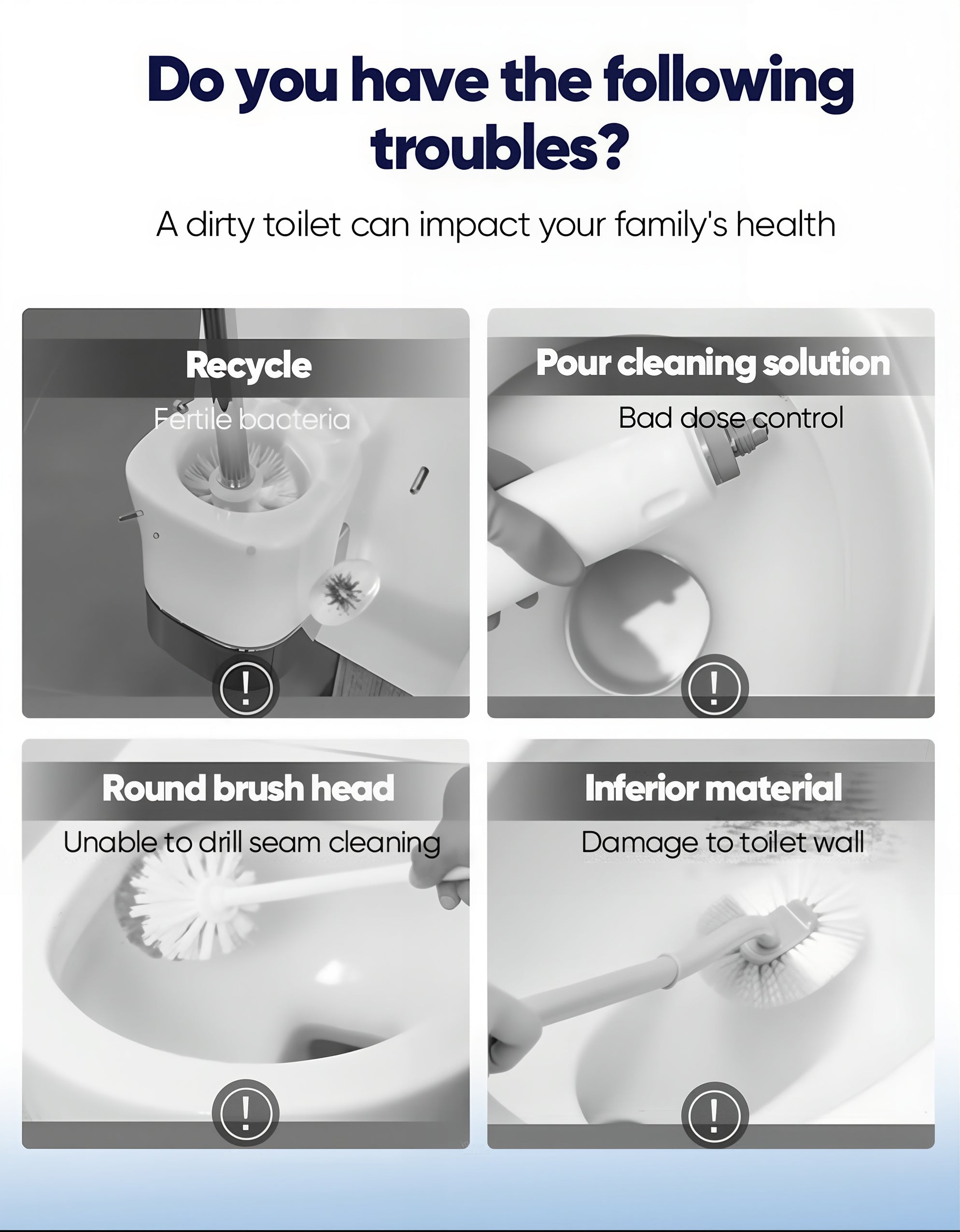 Fresh head every use. Zero germs. Zero smells. Just a toilet that sparkles instantly.